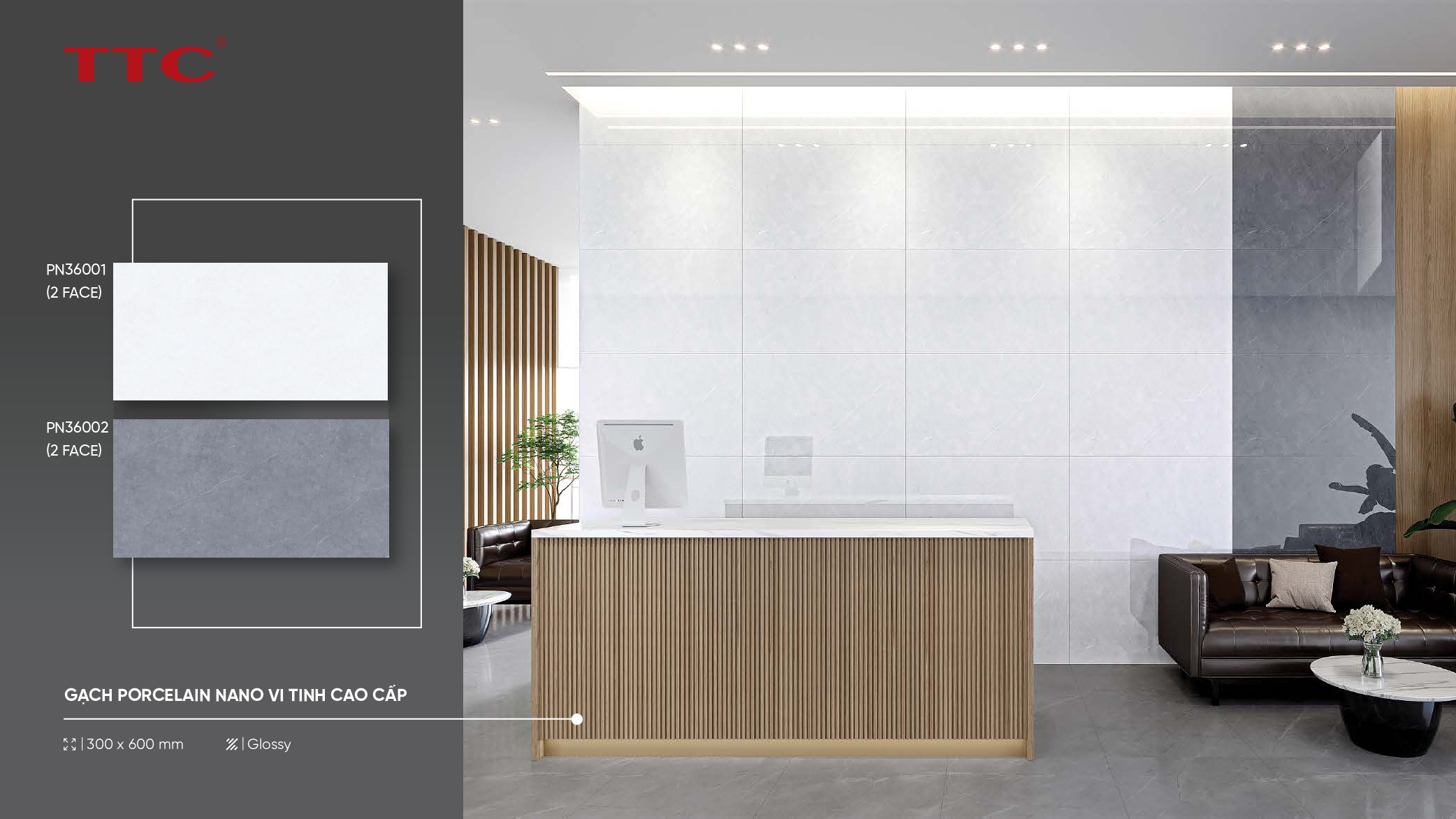 Dòng gạch granite nano vi tinh cao cấp, bề mặt bóng sáng, phù hợp không gian hiện đại.