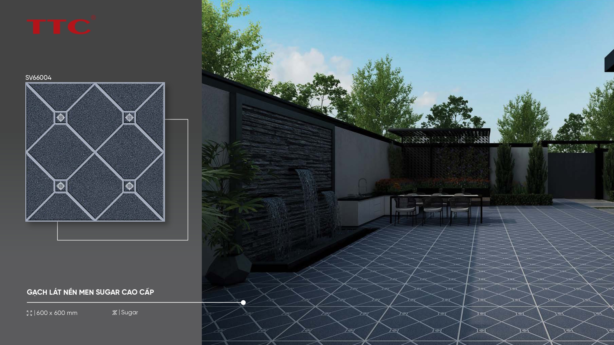 Gạch lát nền men sugar cao cấp, bề mặt đẹp, dễ vệ sinh, phù hợp gia đình và công trình.